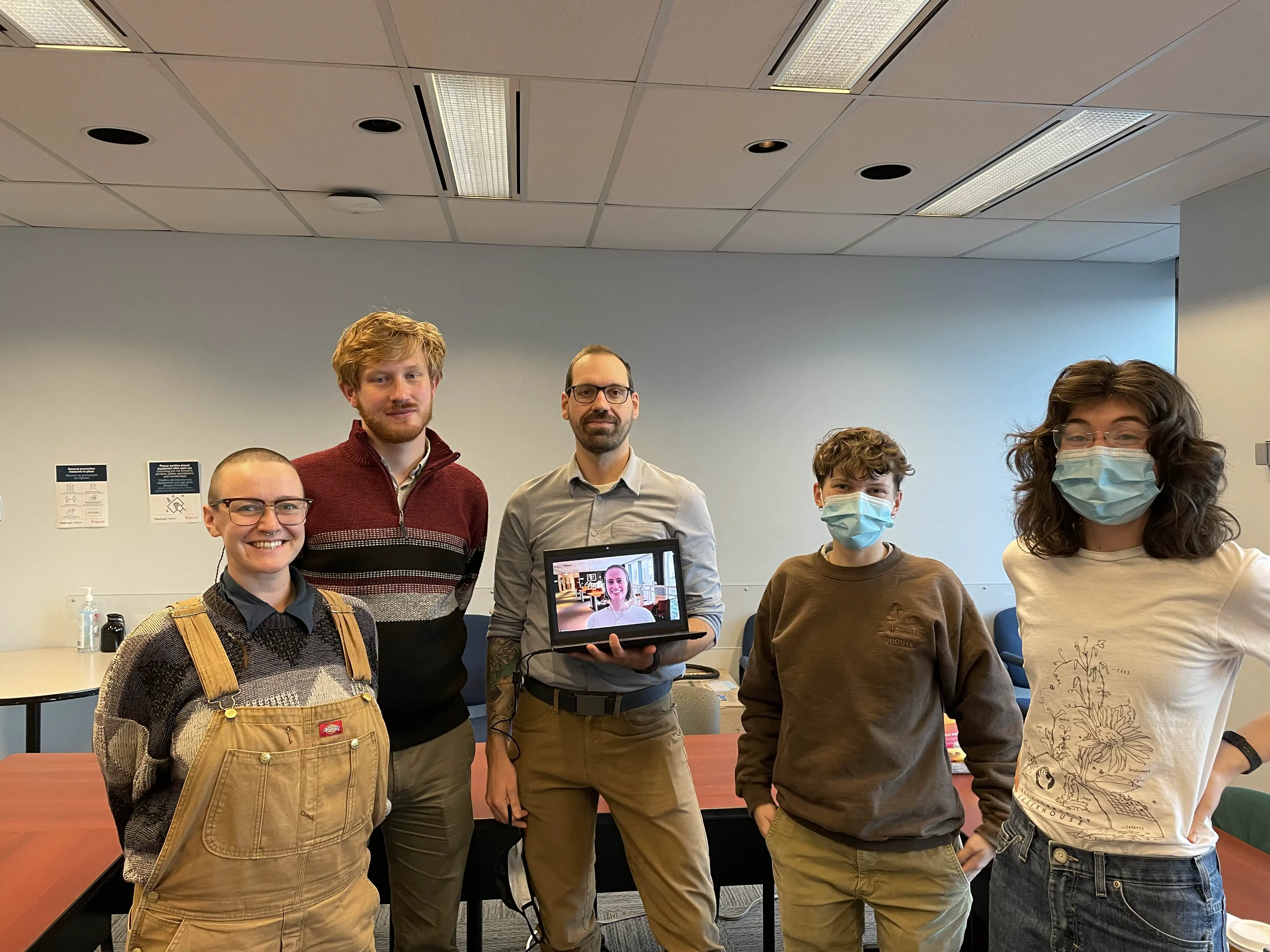 On our side of the table were Jordan Cowie (2L, Grader & Course Tutor, Management/Law), Bronwyn Walsh (Recent Graduate, Grader & Course Assistant, Math & Stats), Donald Morard (PhD Candidate, Grader, History), Guillaume Forest-Allard, our advisor from our affiliate union Fédération nationale des enseignantes et des enseignants du Québec (FNEEQ), and both AGSEM co-presidents, Dallas Jokic and emma mckay.